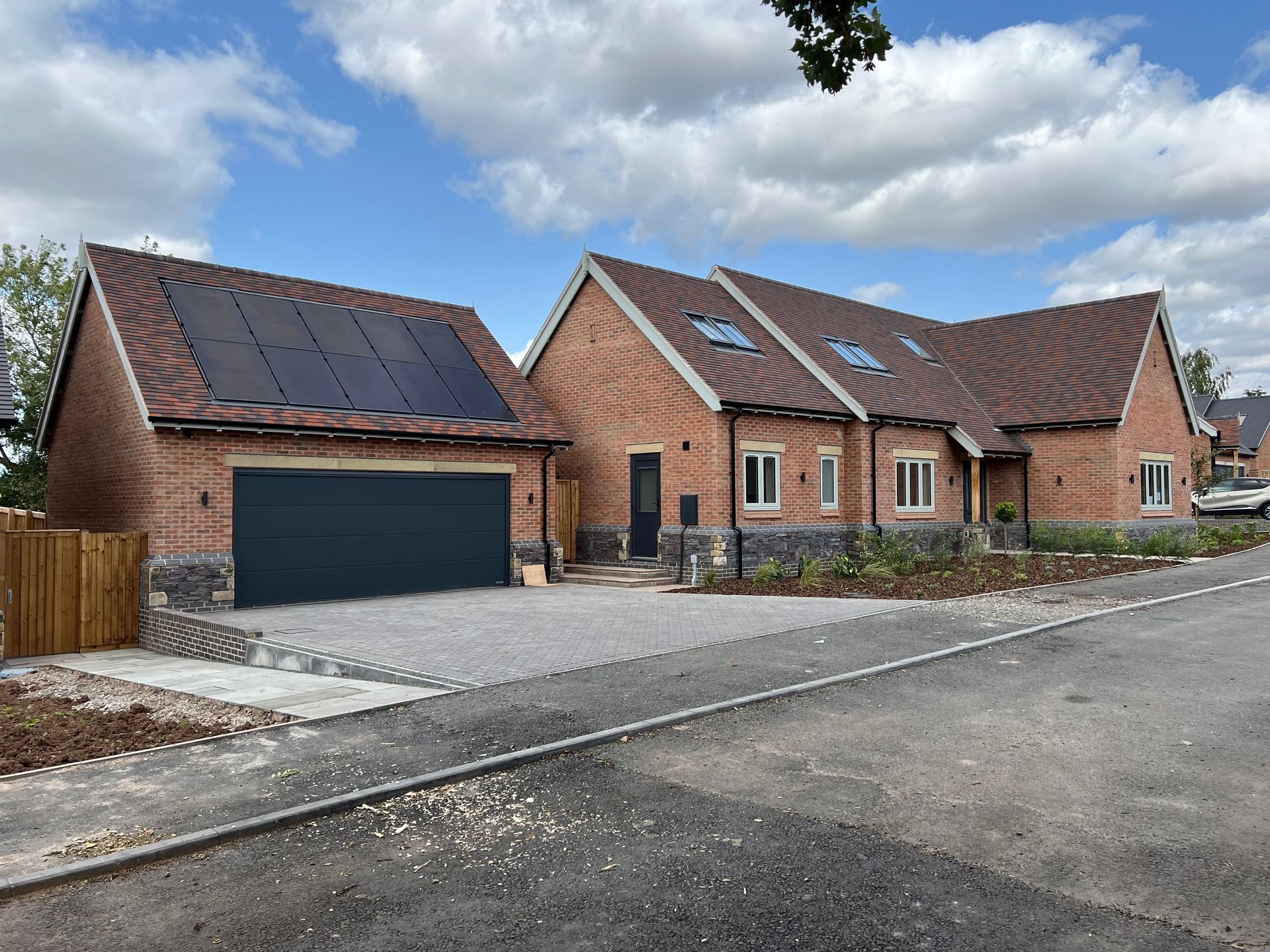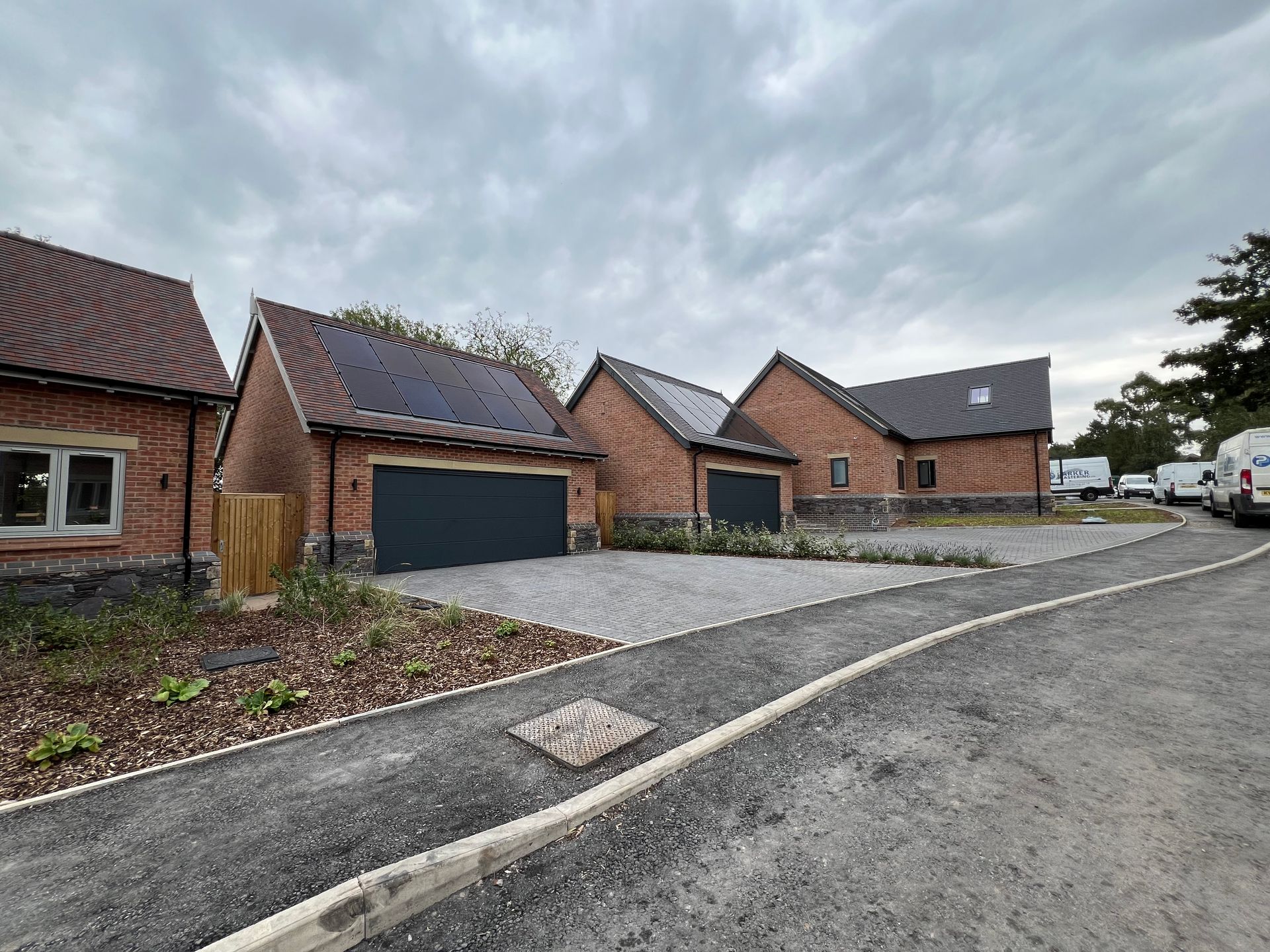 Each dwelling is fitted with an air source heat pump to provide heating & hot water to each dwelling, and 6 of 7 units have been fitted with solar panels which are fitted to the garaging. The incorporation of solar panels was subject to the purchasers requirements.