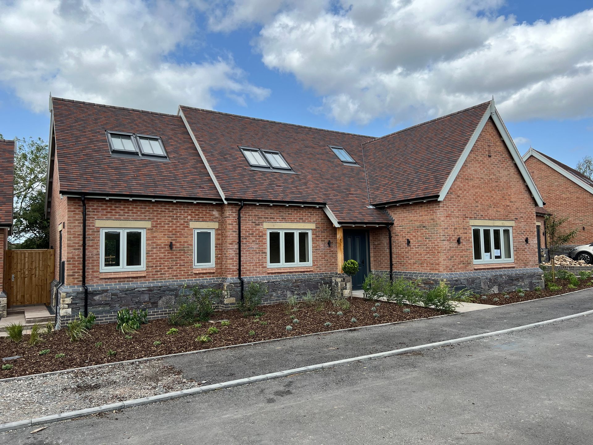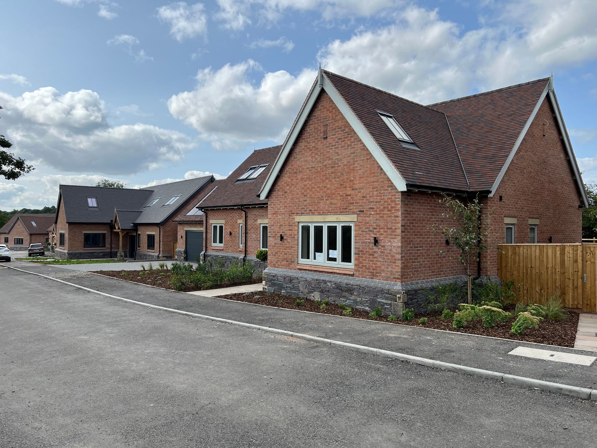 The appearance of the buildings with their relationship to the neighbouring dwellings and the surrounding area was of concern, especially the roof heights. We introduced brick and stone detailing to the external facade, intended to positive contribute to the existing street scene. We consider we have achieved this well.